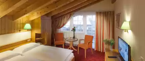 Unsere Doppelzimmer Standard haben eine Grösse von ca. 25 m² und sind mit einem grossen Schlafbereich ausgestattet. Neben einer gemütlichen Sitzecke und einem grossen Balkon, verfügen diese Zimmer über ein separates Bad mit WC, Selbstwahl-Telefon, Radio, Flatscreen-TV mit Kabel und abschliessbarer Aufbewahrungsmöglichkeit.